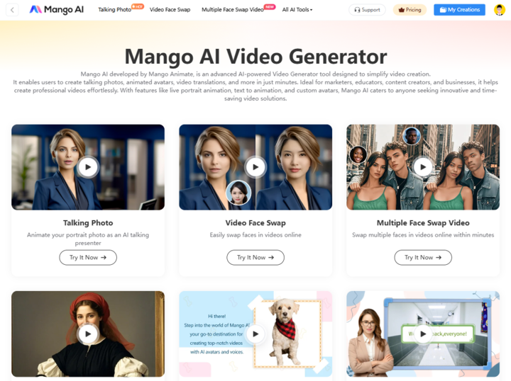 Perfect for marketers, content creators, and educators, Mango AI offers customizable video templates, easy-to-use features, and the flexibility to adapt content to suit your needs—whether that’s with virtual humans, animals, or Disney-like animations. With an expansive library of visuals and a simple interface, Mango AI makes content creation fun, fast, and professional.