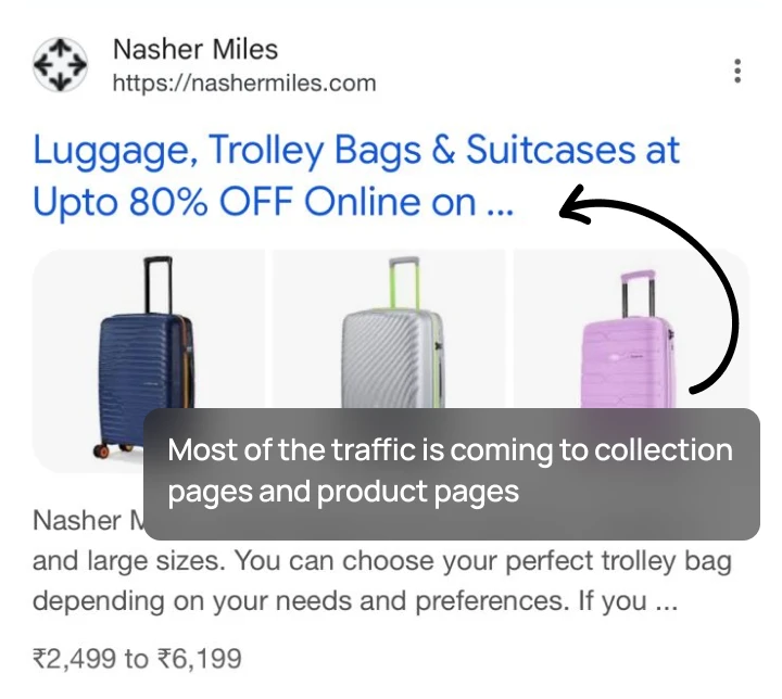 Nasher Miles attracts significant traffic to their collection pages and product detail pages (PDPs) through organic search and paid ads. However, user engagement often declined rapidly due to repetitive product grids on category and product listing pages (PLPs).