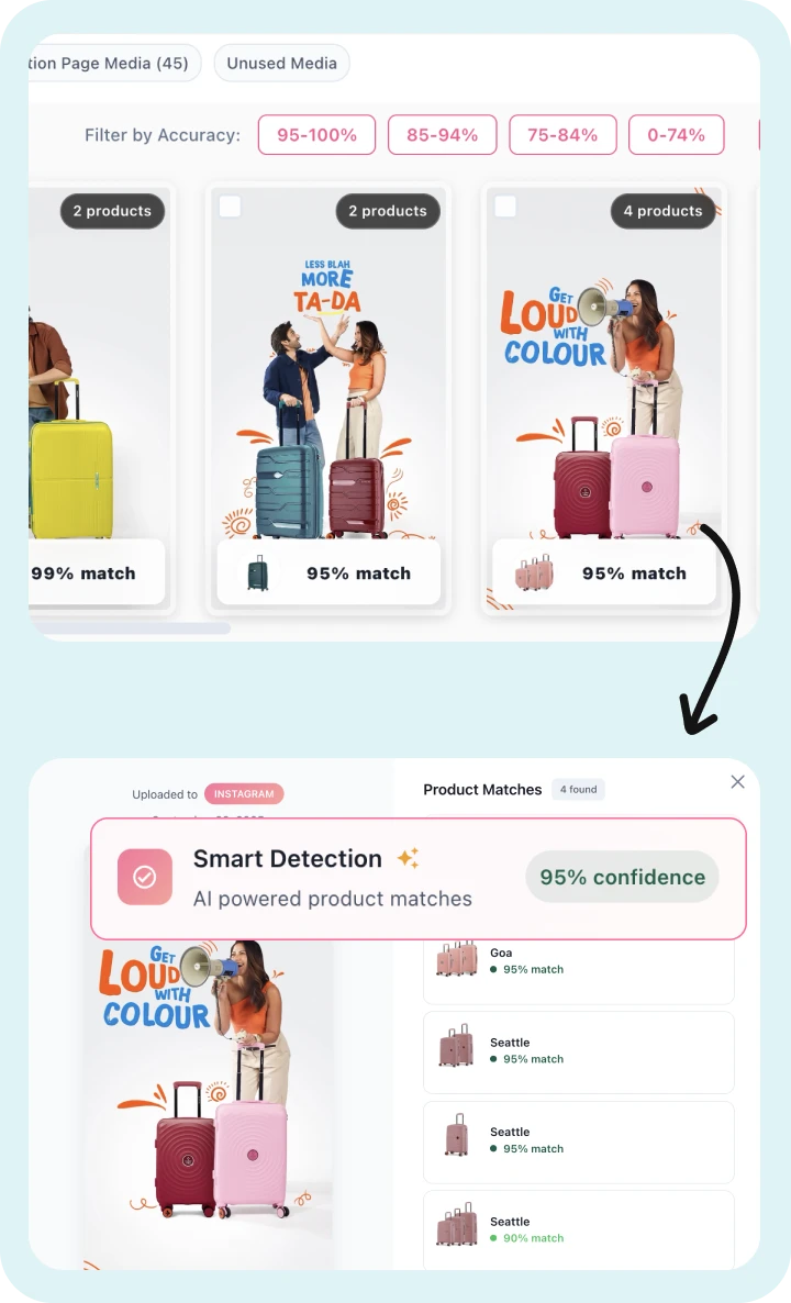 Nasher Miles kicked things off by making their content process simpler. They set up a system to pull videos from Instagram every day and tag them with products using smart matching that works with over 95% accuracy. This saved the team a lot of manual work and ensured that even videos with multiple products had every item spotted easily. As a result, they opened up new ways to cross-sell right within those shoppable videos.